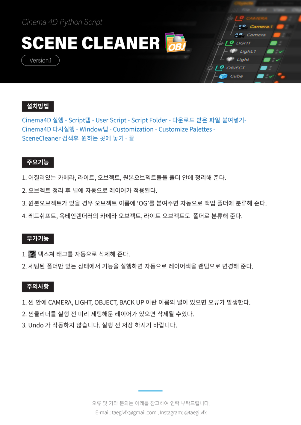 Scene Cleaner (Cinema4D Python Script) Korean ver